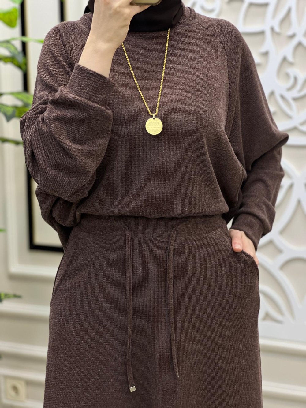 Tesettür Burgu Spor Etek Buluz Takım Şik ve zarif hanımlar Burgu takım kod.13118 kargo ücretsiz Beden 38 40 42 44 Kumaş Türü: Rașel likrali triko esnektir Buluz yarasa koldur Buluz boy: 55.57cm Etek boy: 96.98cm Etek beli lastikli ve ip kemerli ceplidir