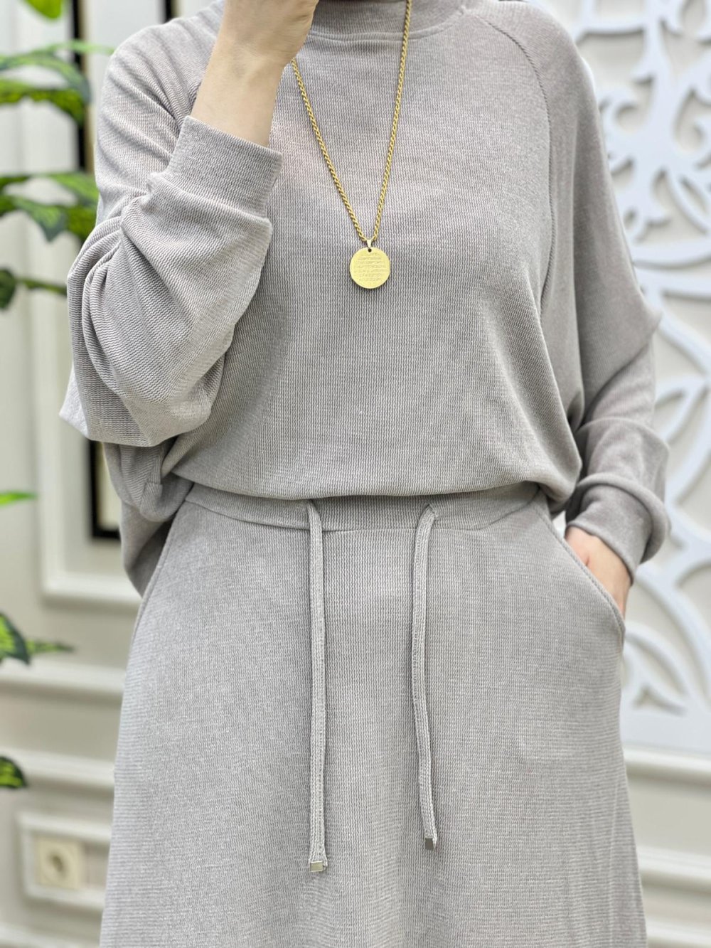 Tesettür Burgu Spor Etek Buluz Takım Şik ve zarif hanımlar Burgu takım kod.13118 kargo ücretsiz Beden 38 40 42 44 Kumaş Türü: Rașel likrali triko esnektir Buluz yarasa koldur Buluz boy: 55.57cm Etek boy: 96.98cm Etek beli lastikli ve ip kemerli ceplidir
