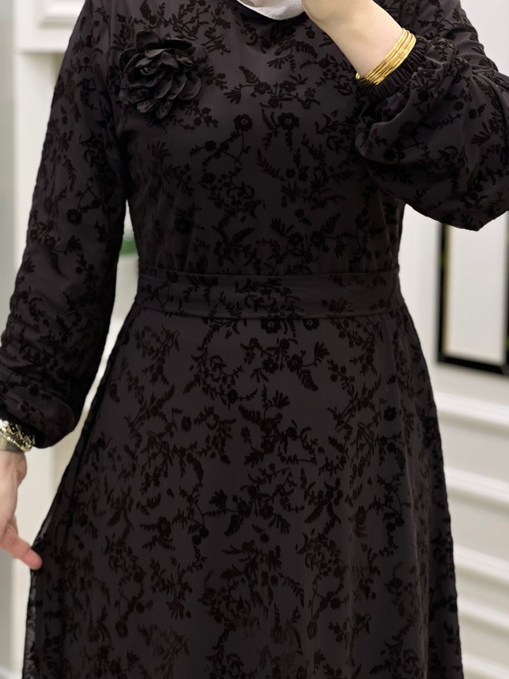 ?KUMAŞ :1.Sınıf ital flok baskı şifon kumaş iç göstermez kol dahil astarlidir sırtı fermuarlı