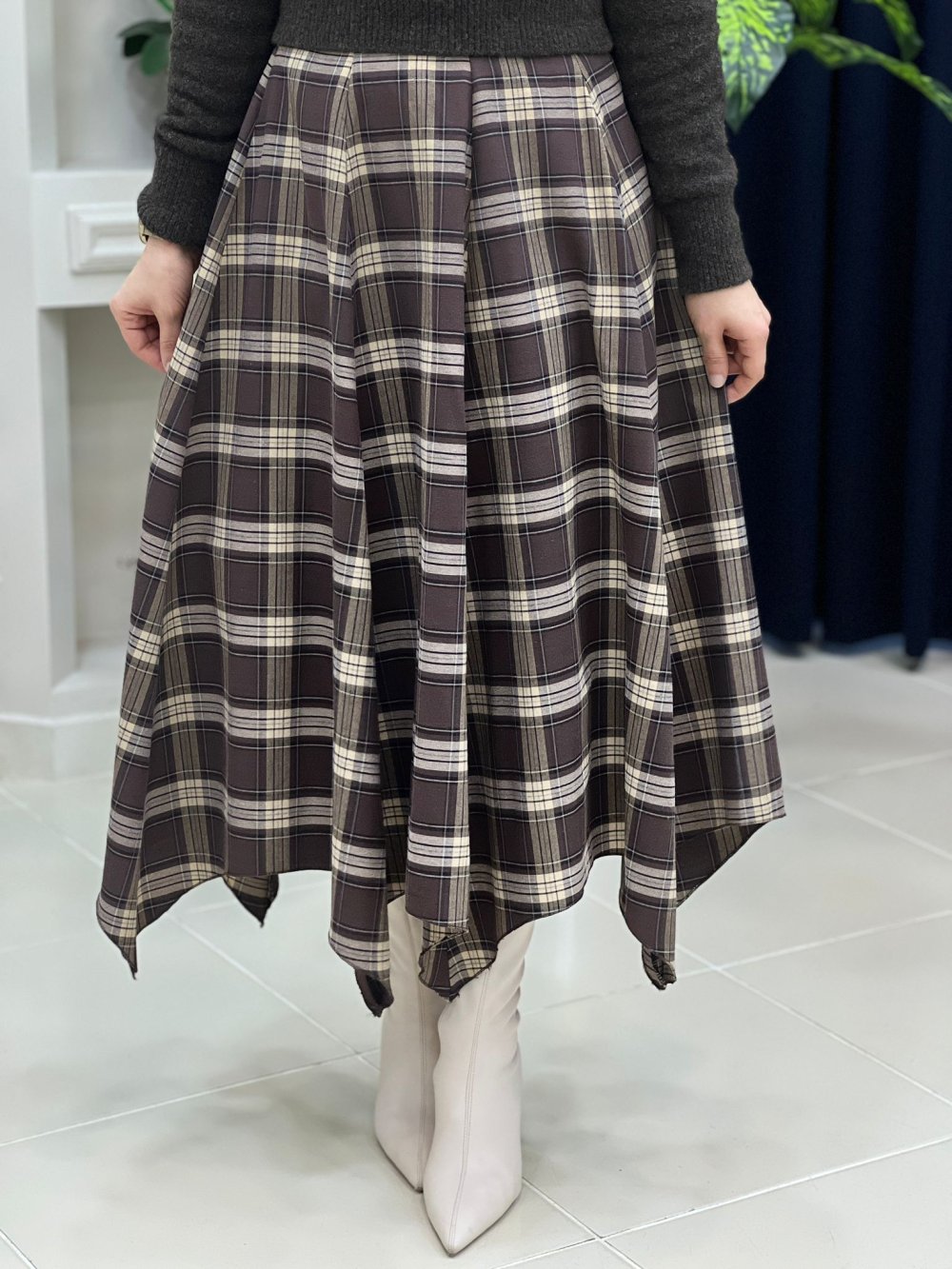 Modern Ekose Etek Camel