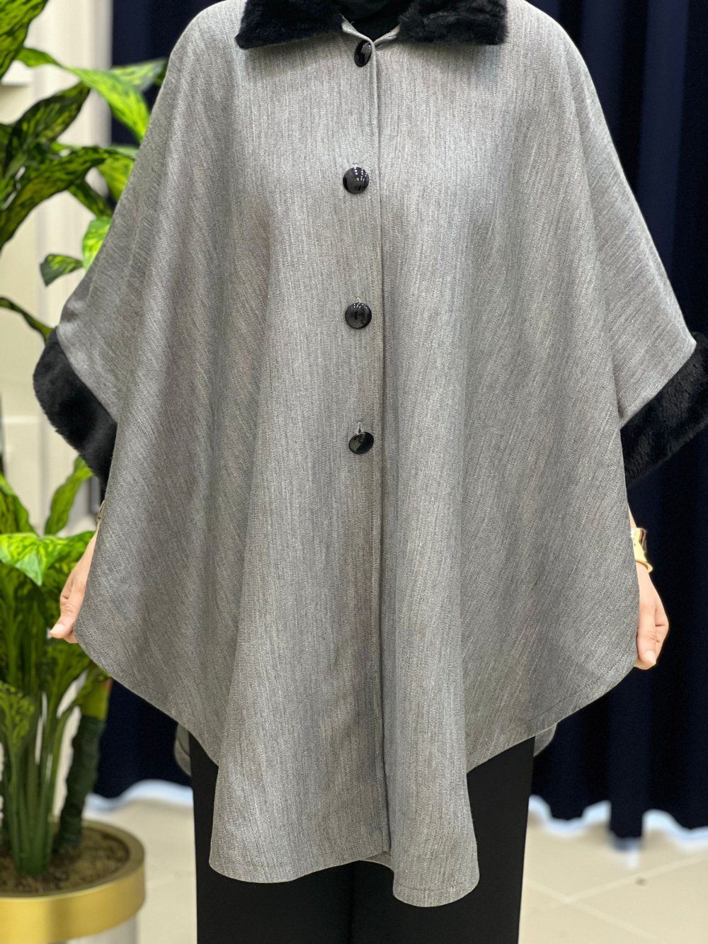 Kürk Detaylı Pançomuz 52 Bedene kadar uyumlu stoklarda Kod Panço: 13132 Taş detaylı ve düğmelidir KUMAŞ :1.Sınıf triko kumaş esnektir BEDEN : 38/52uyumlu standart BOY 90.93cm FİYAT Kargo ücretsiz