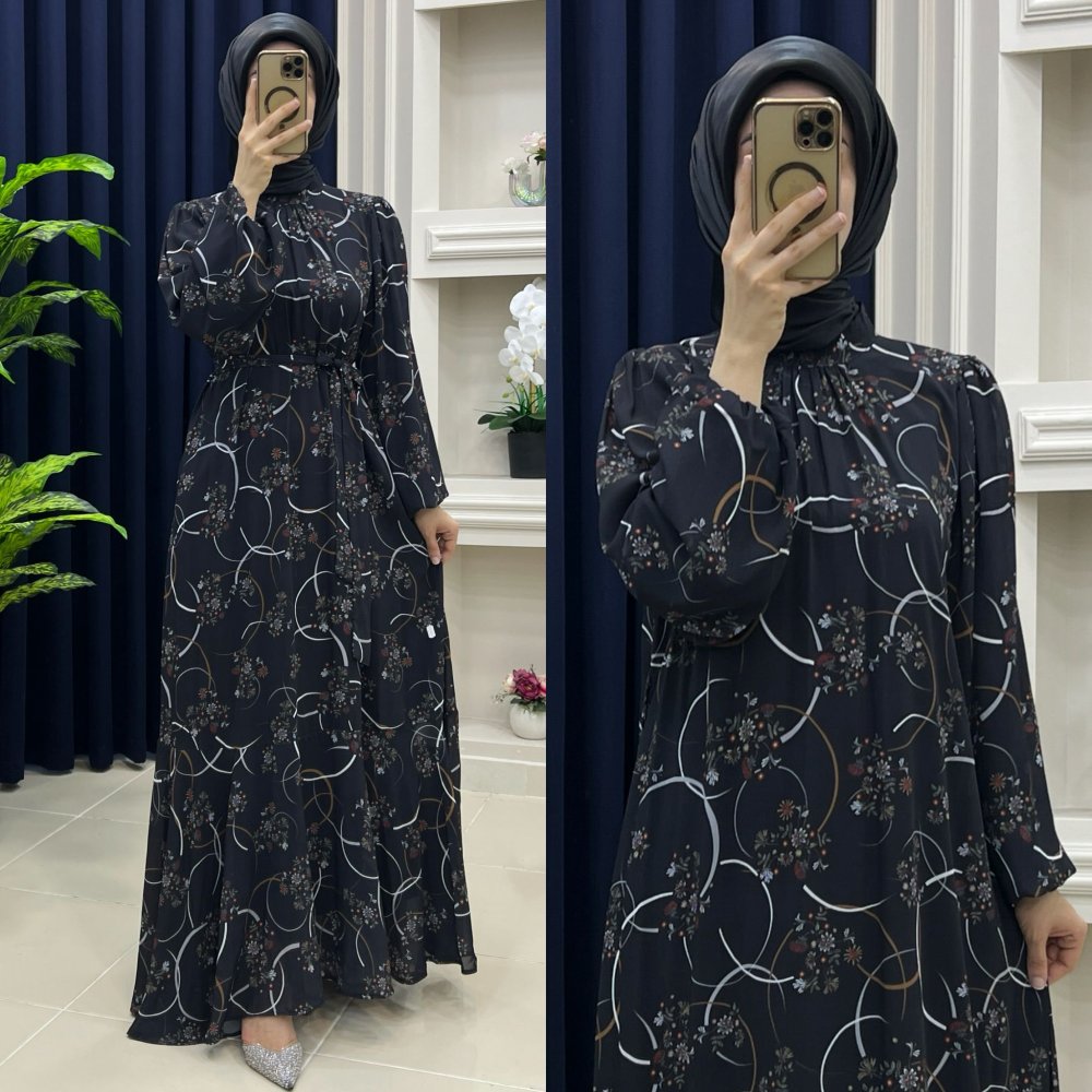 Şimal Tesettur Şifon Elbise Kod 13071 Beden 38 40 42 44 46 beden aralığı Boy 143.145cm 1.sınıf Şifon kumaş Komple astarlıdır Beli kemerli