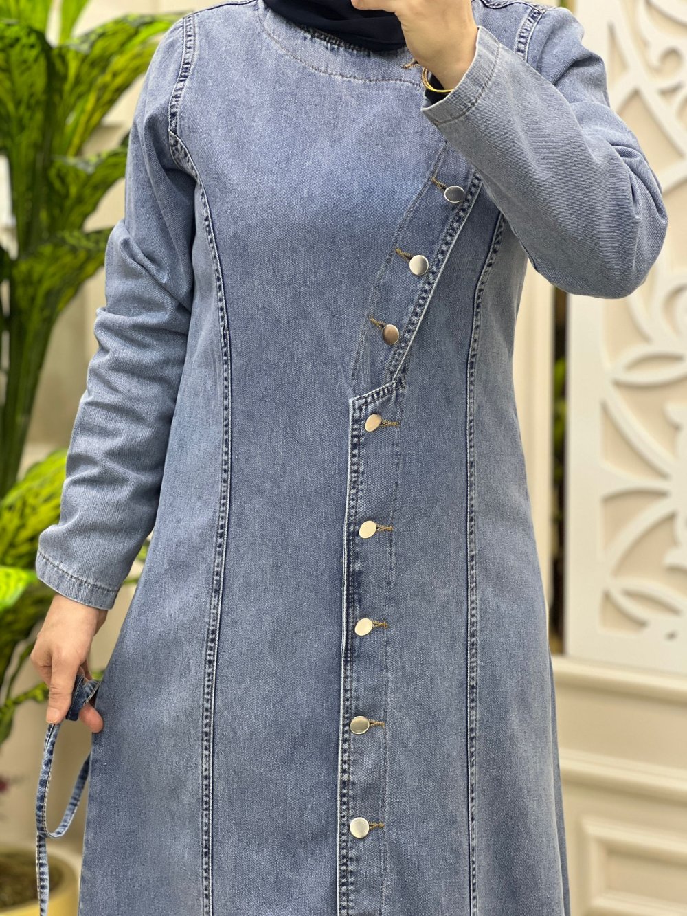 Kumaş mevsimlik Kot boydan düğmeli kemer hedıyeli