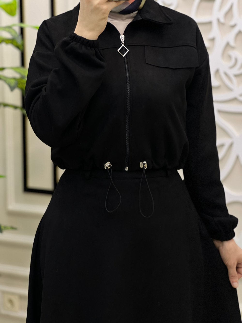 Tesettür Latte Ceket Etek Takım Şik ve zarif takımimiz Latte takım kod.13117 Ceket Beli ayarlanabilir şekilde lastiklidir kargo ücretsiz Beden 38 40 42 44 Kumaş Türü: Süet Ceket boy: 45 cm Etek boy: 85.87cm Etek beli fermuarlidir