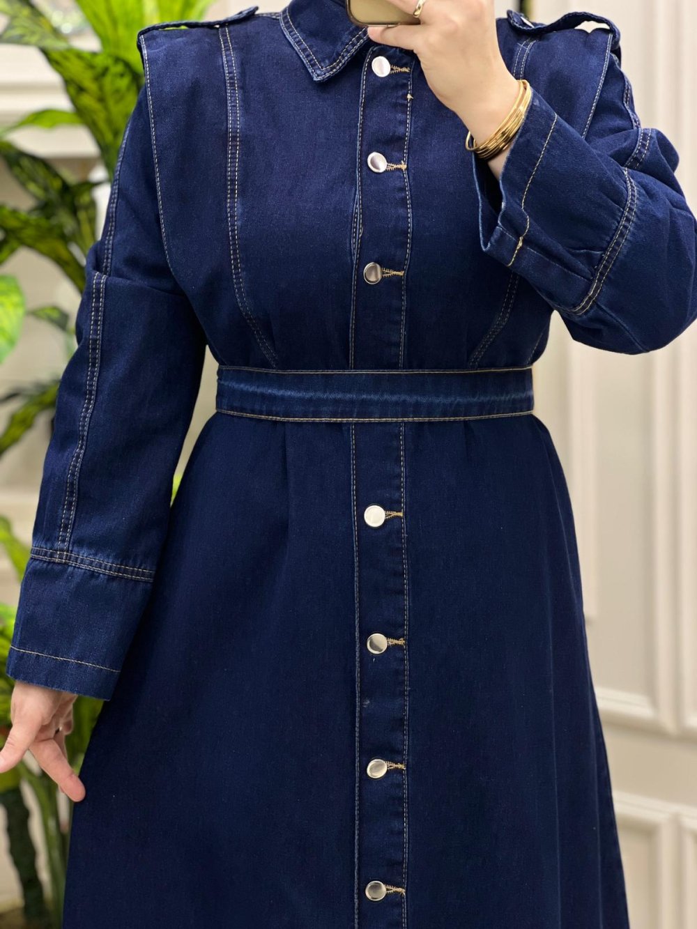 Kumaş mevsimlik Kot boydan düğmeli kemerli